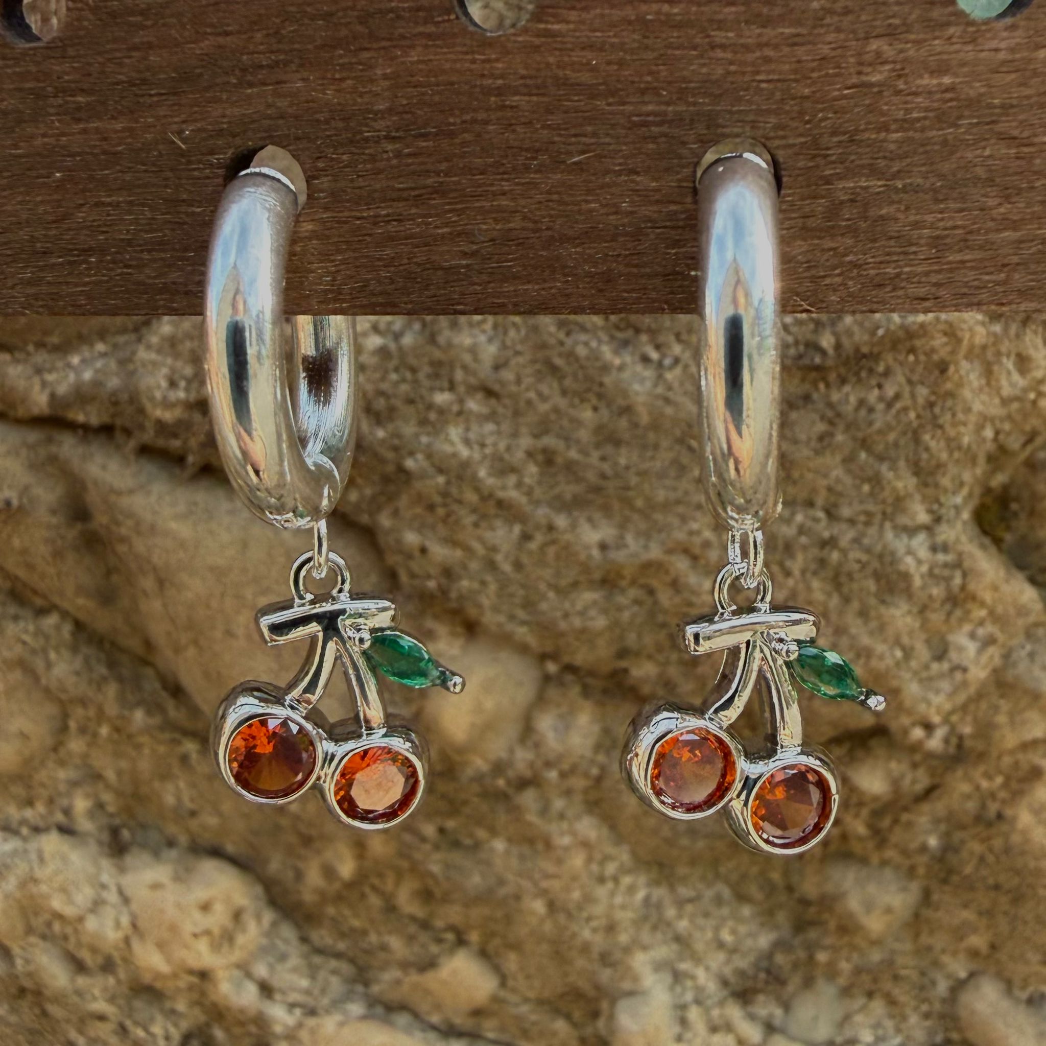 Pendientes aro plateado cereza