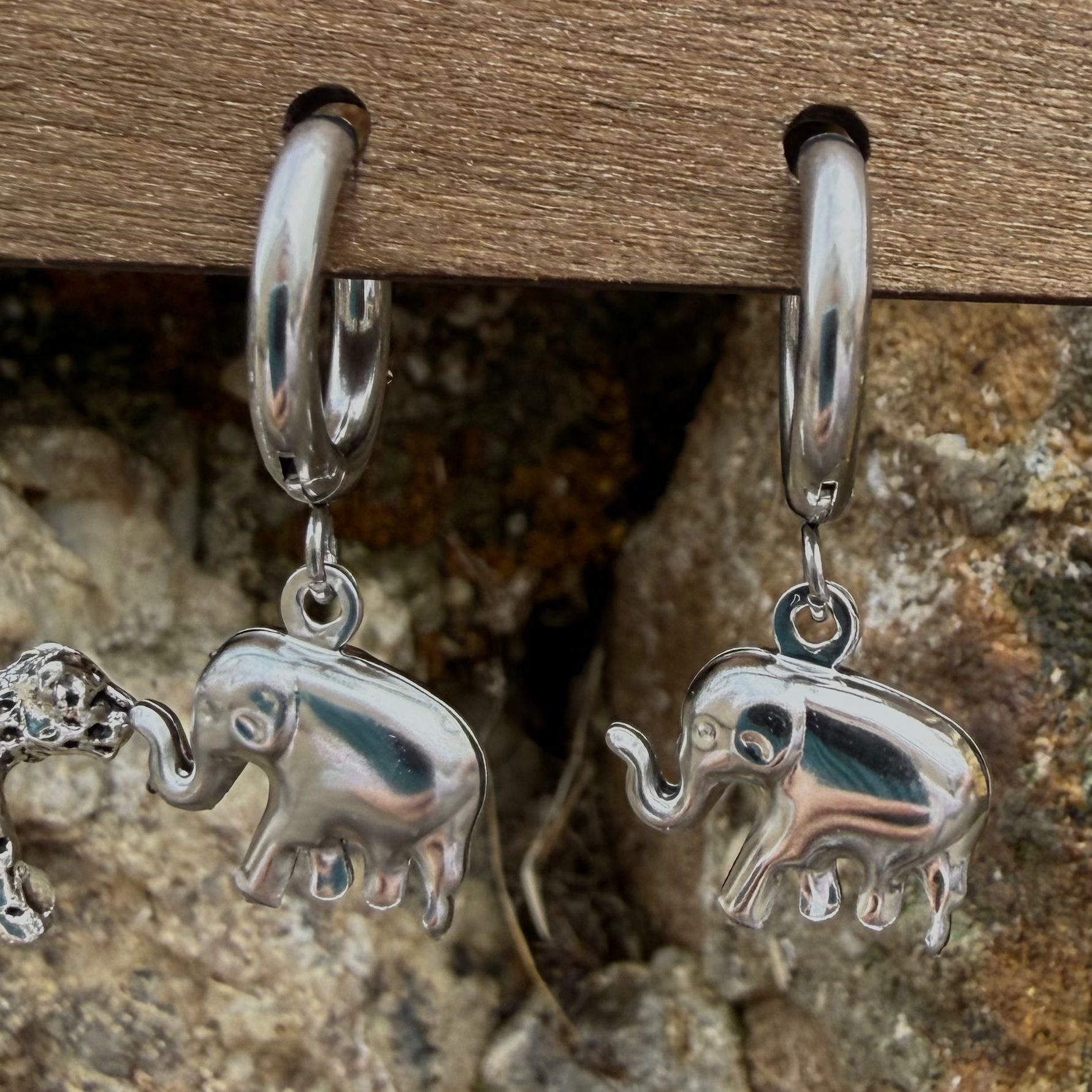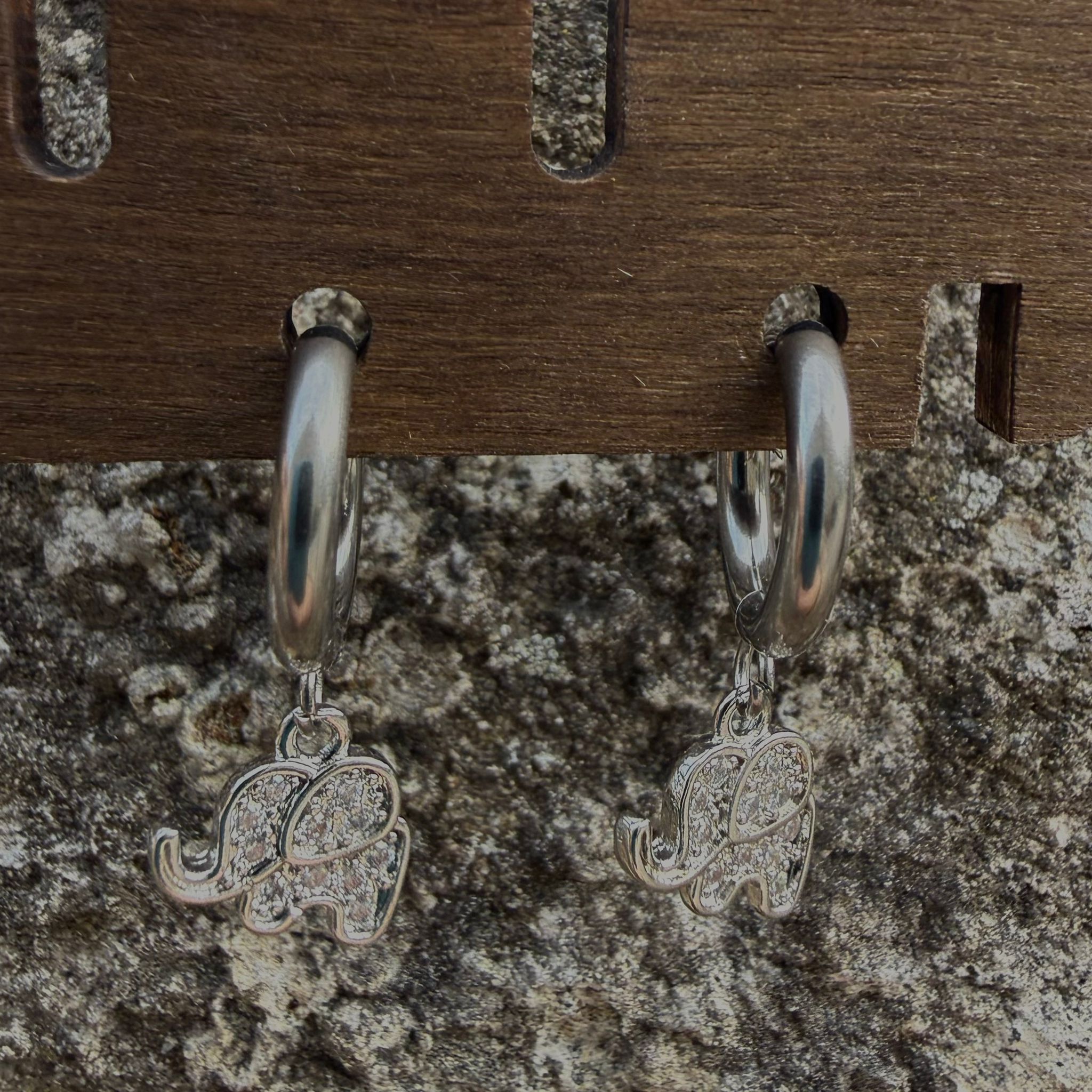 Pendientes aro plateado elefante