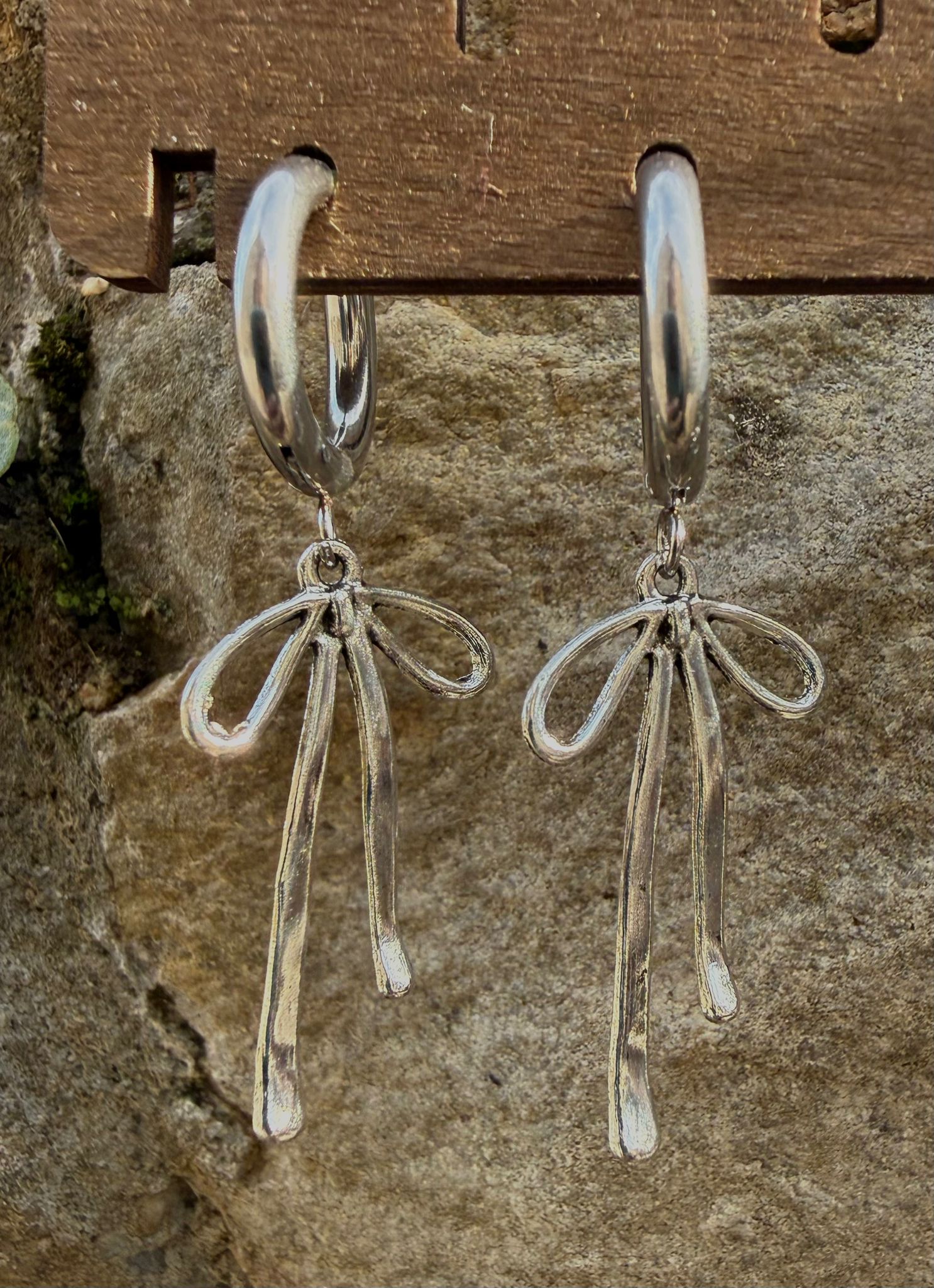 Pendientes aro plateado lazo coquette
