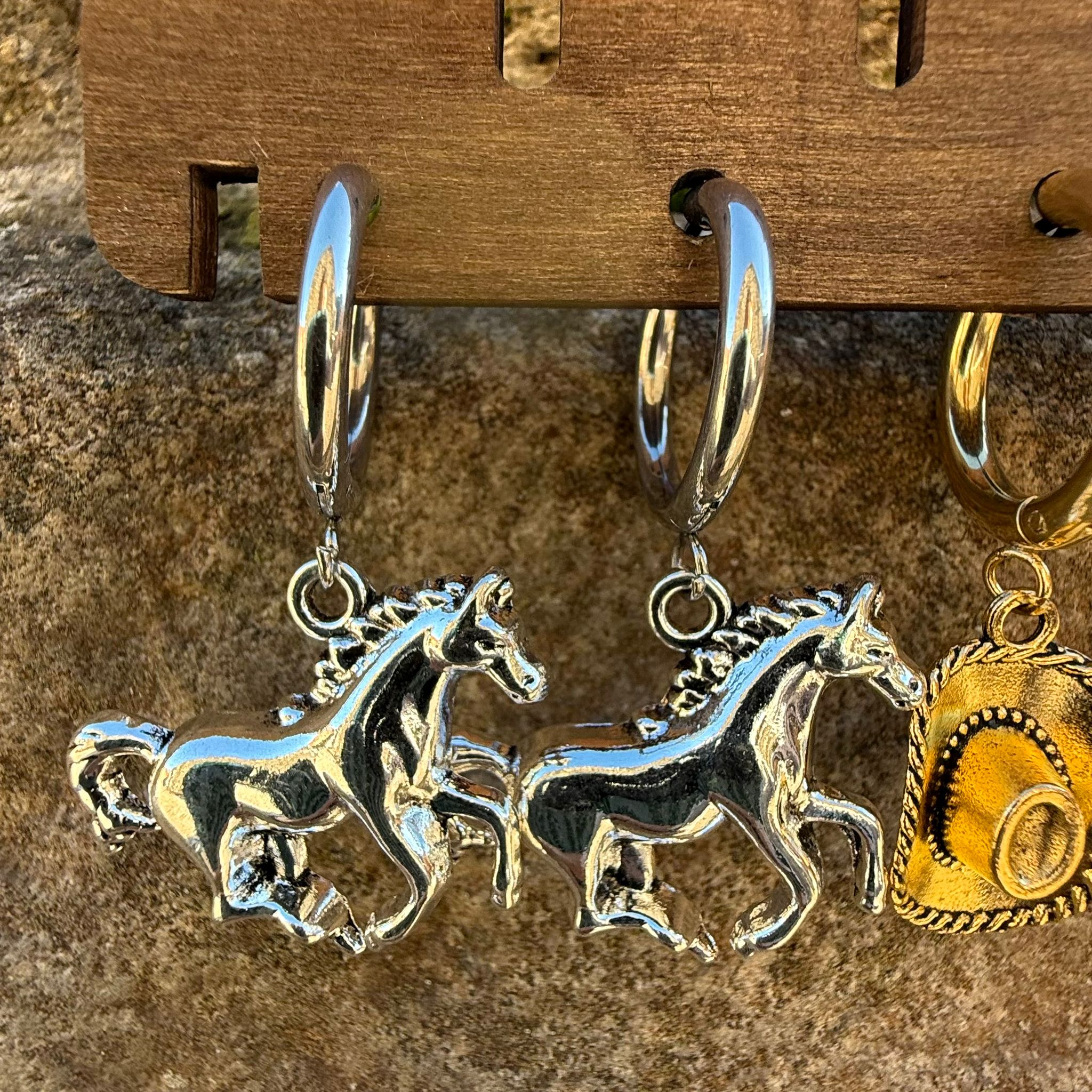 Pendientes aro plateado caballos