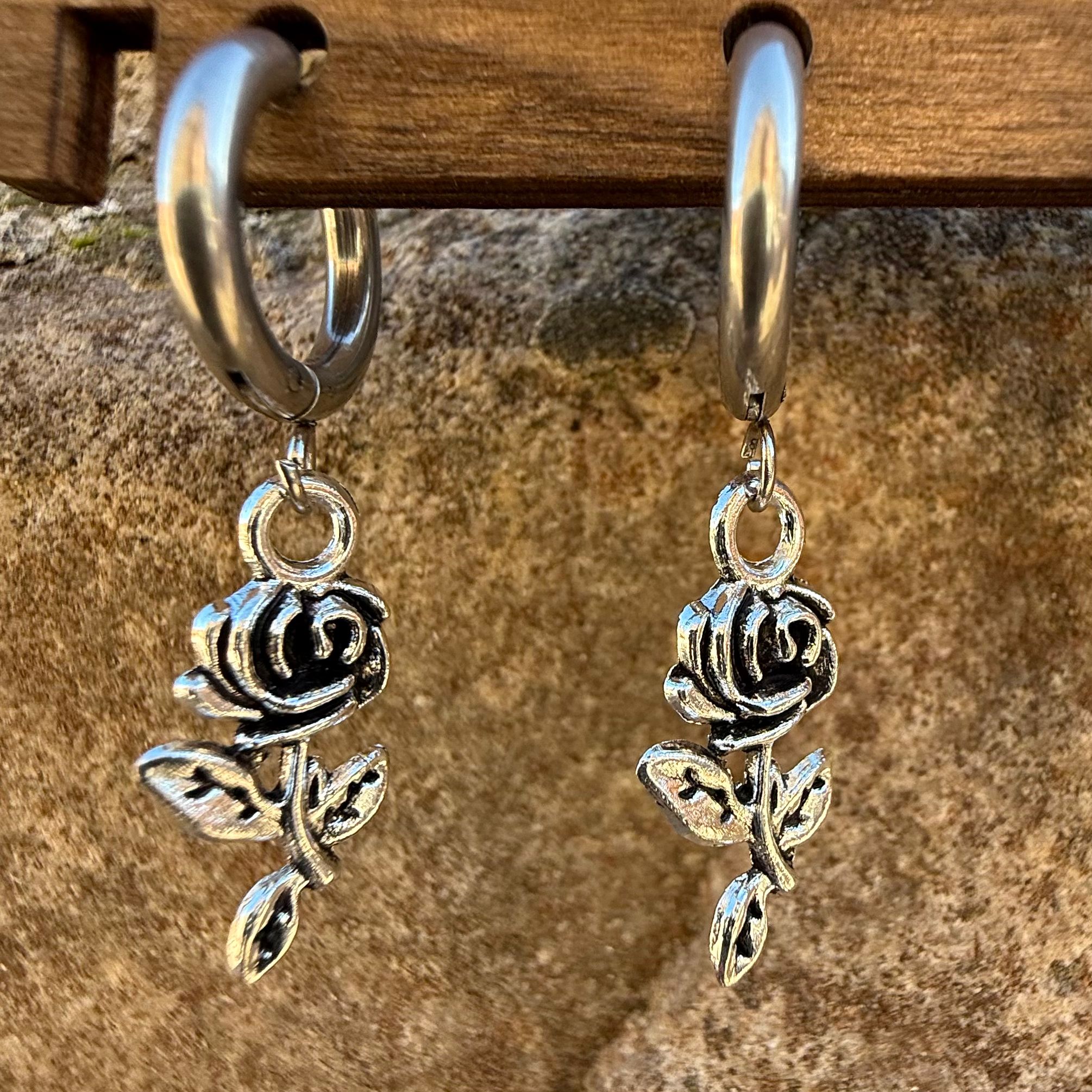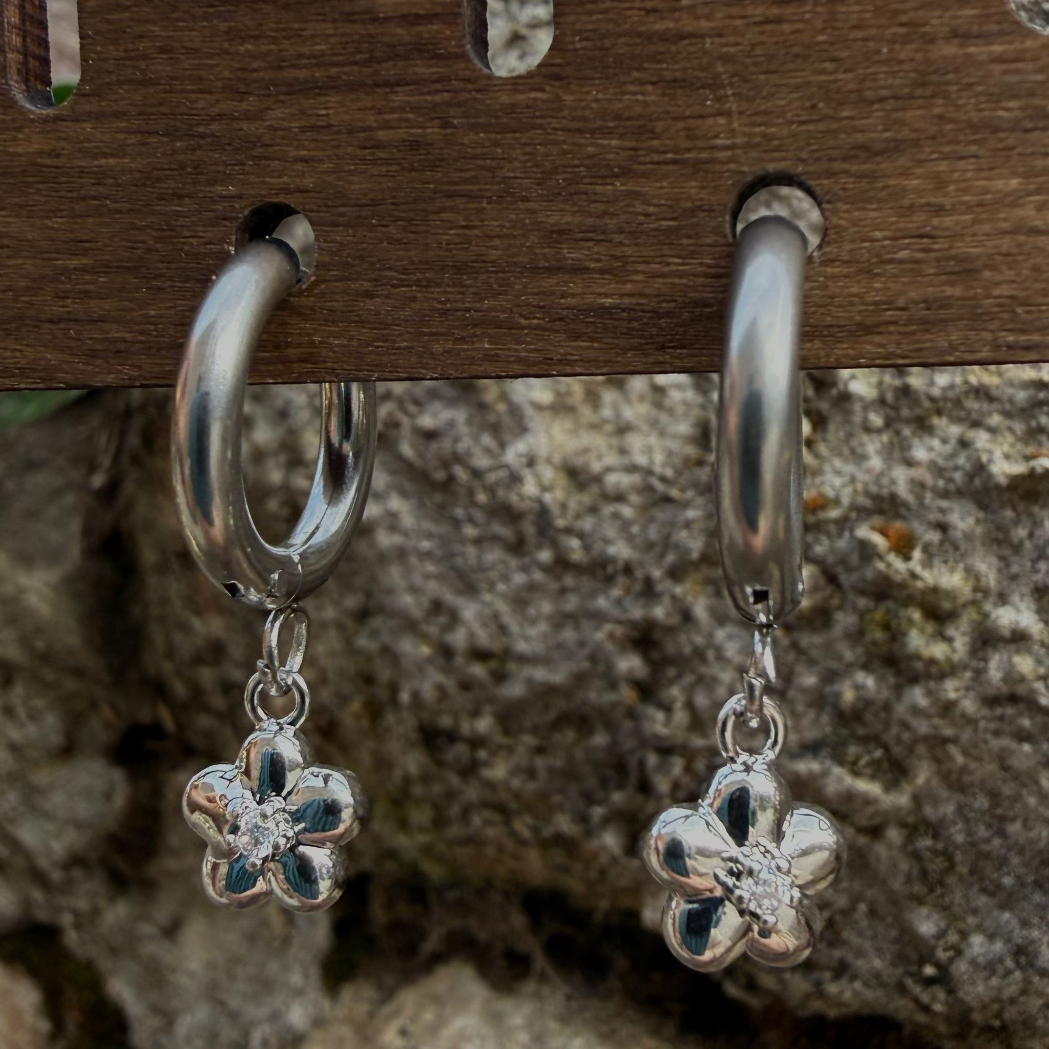 Pendientes aro plateado flor