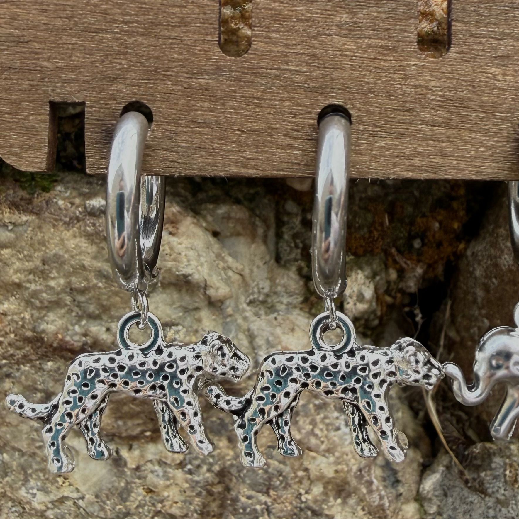 Pendientes aro plateado guepardos