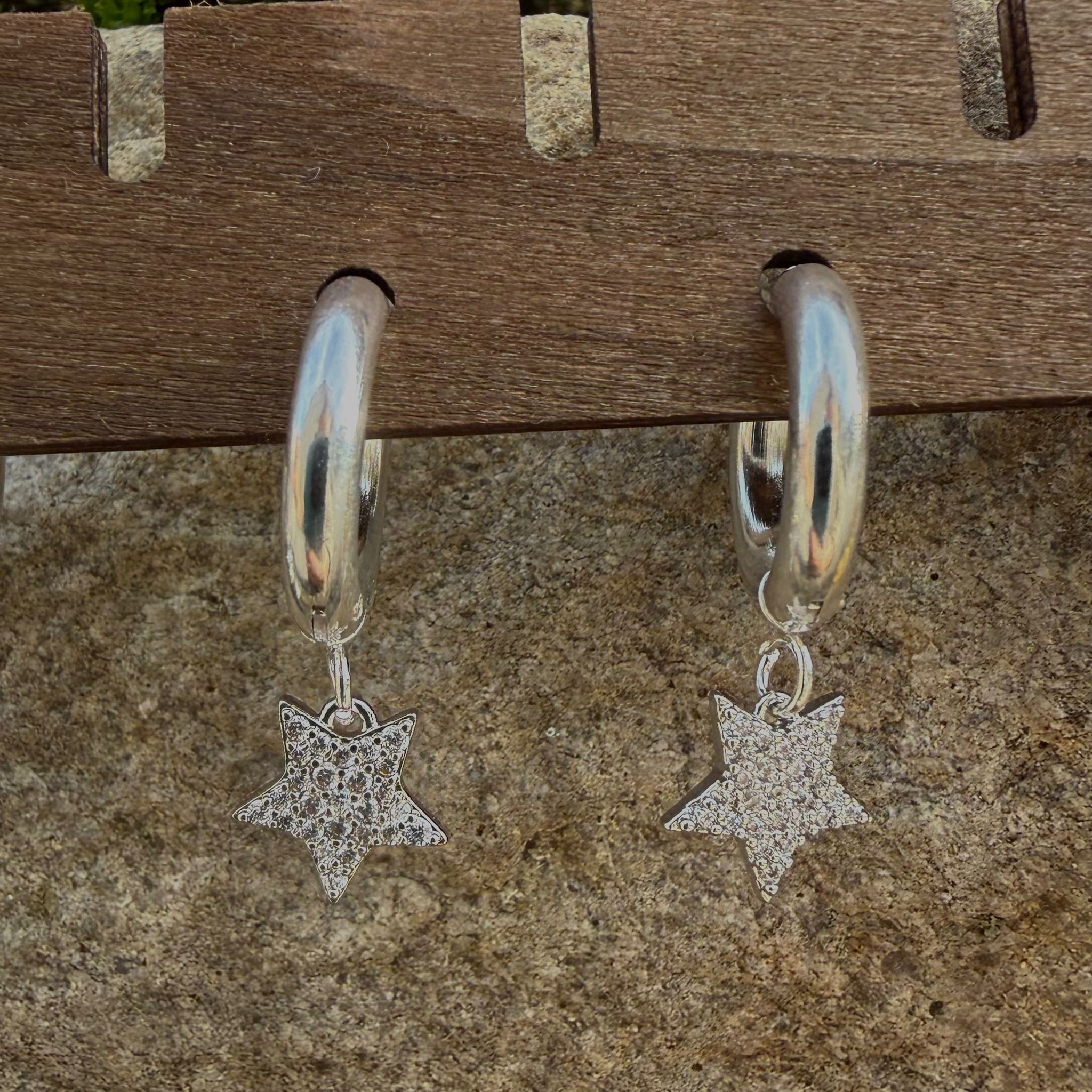 Pendientes aro plateado estrella brillo