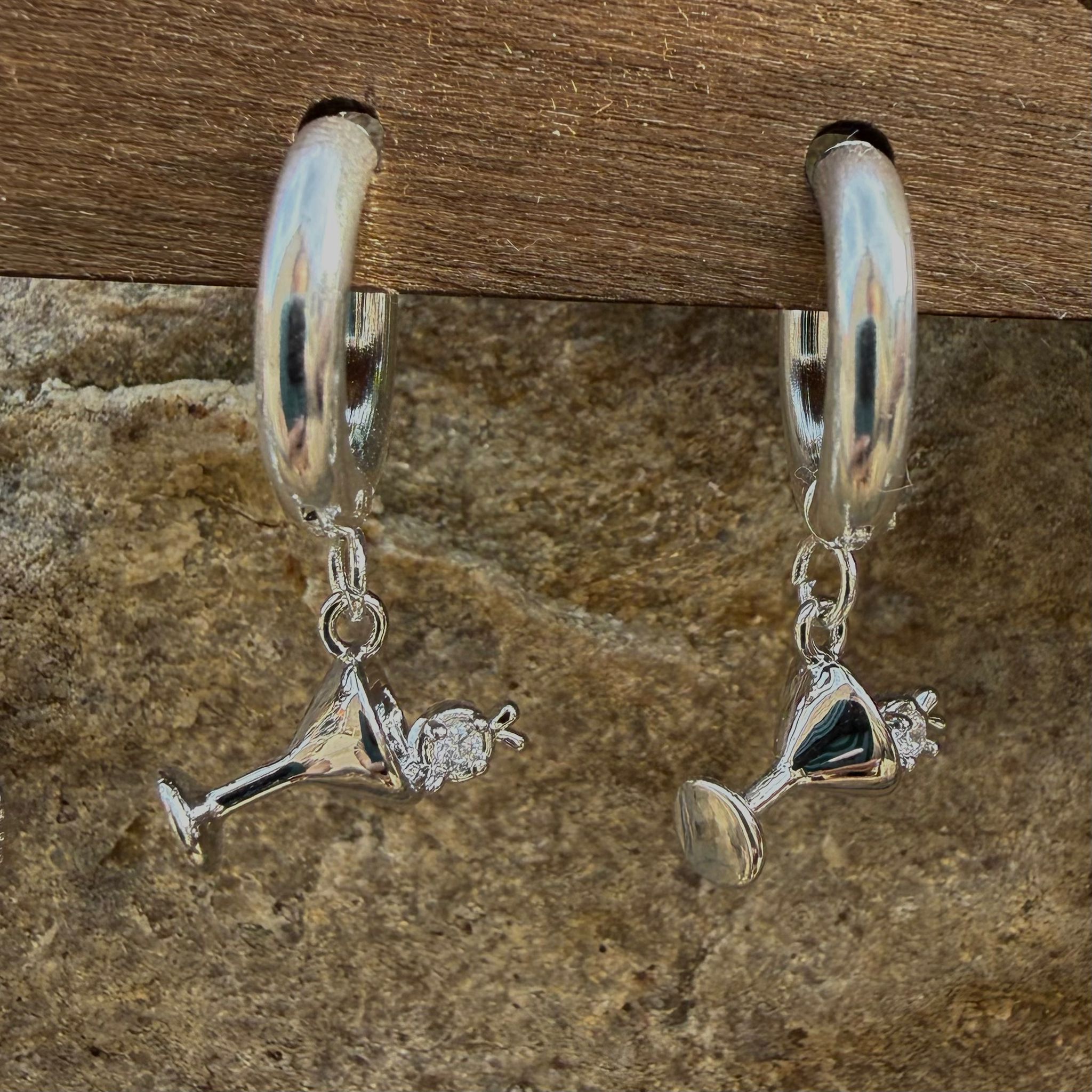 Pendientes aro plateado copa coctel brillo