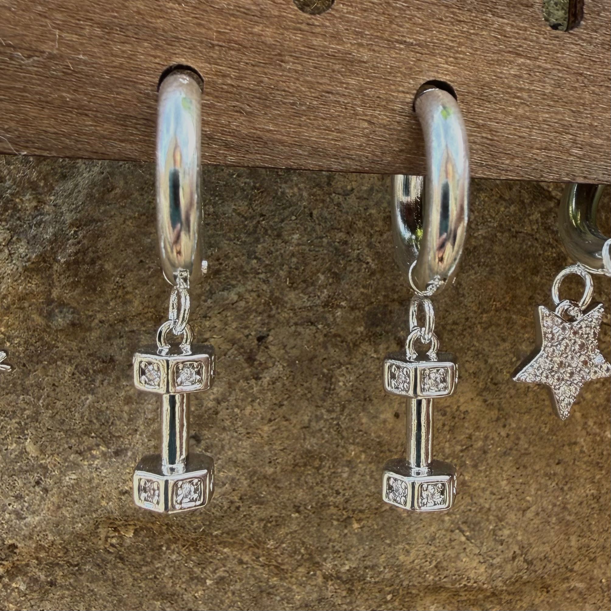 Pendientes aro plateado pesa gimnasio brillo