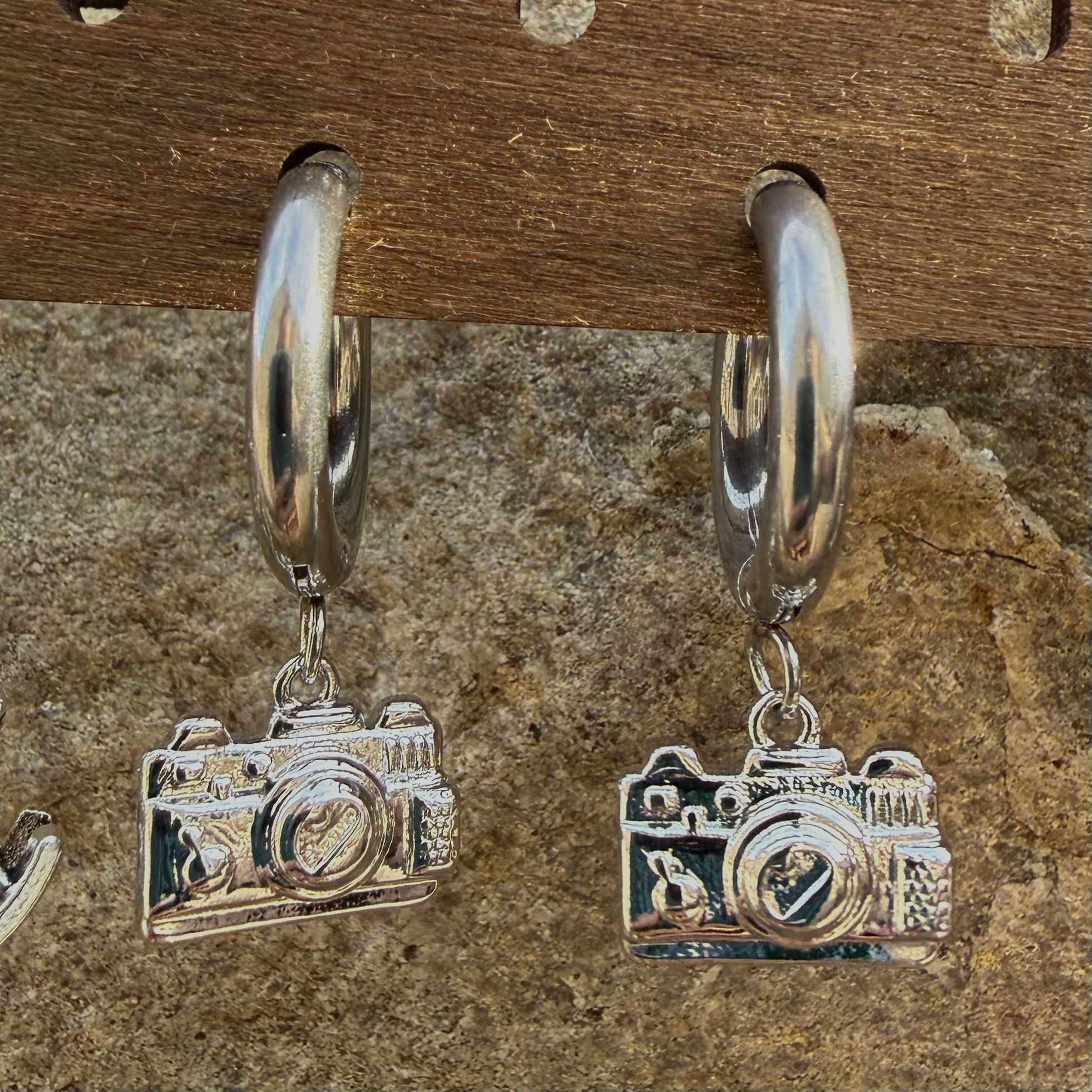 Pendientes aro plateado camara de fotos