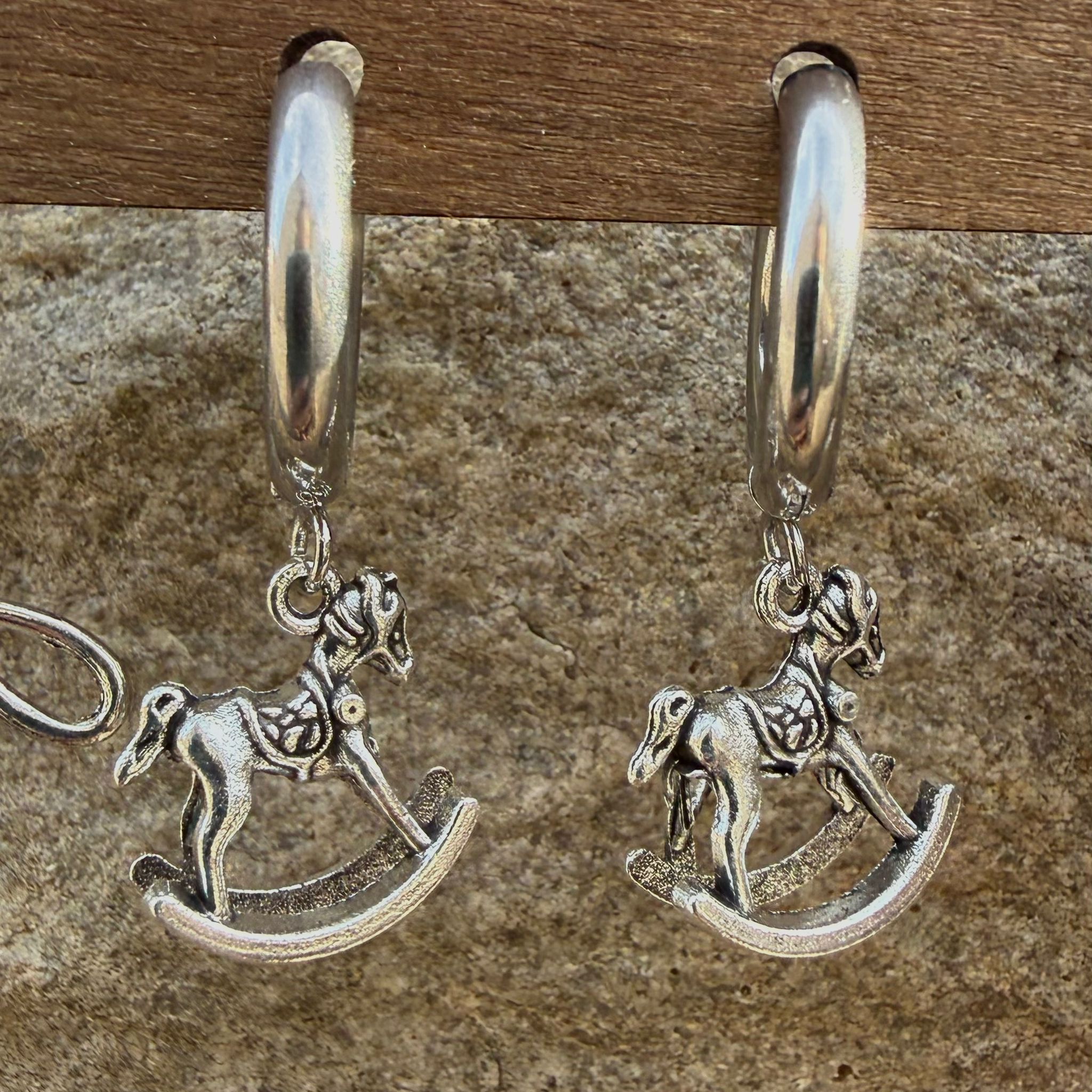 Pendientes aro plateado caballito