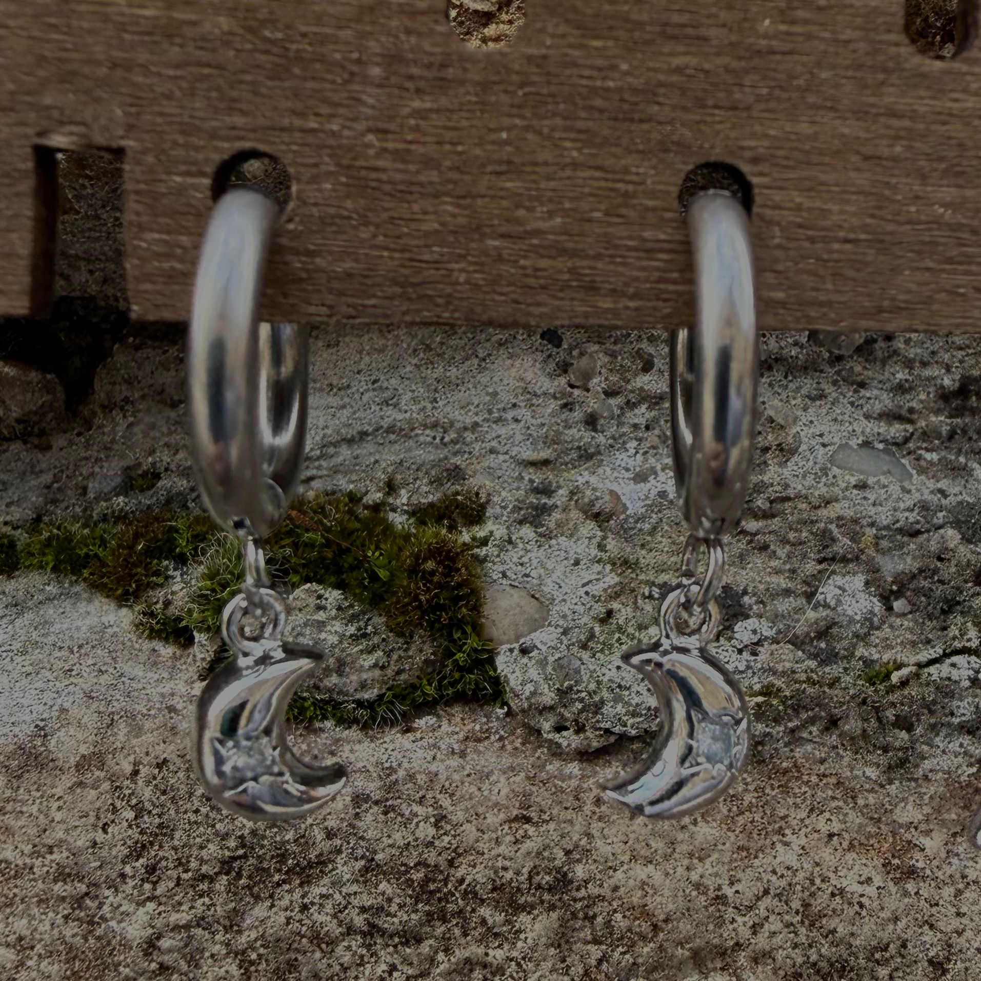 Pendientes aro plateado luna brillo