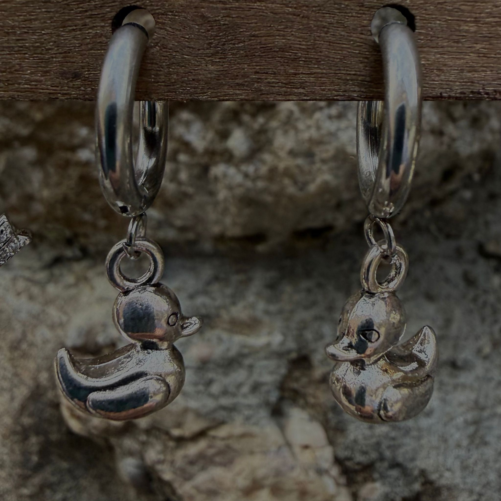 Pendientes aro plateado patitos