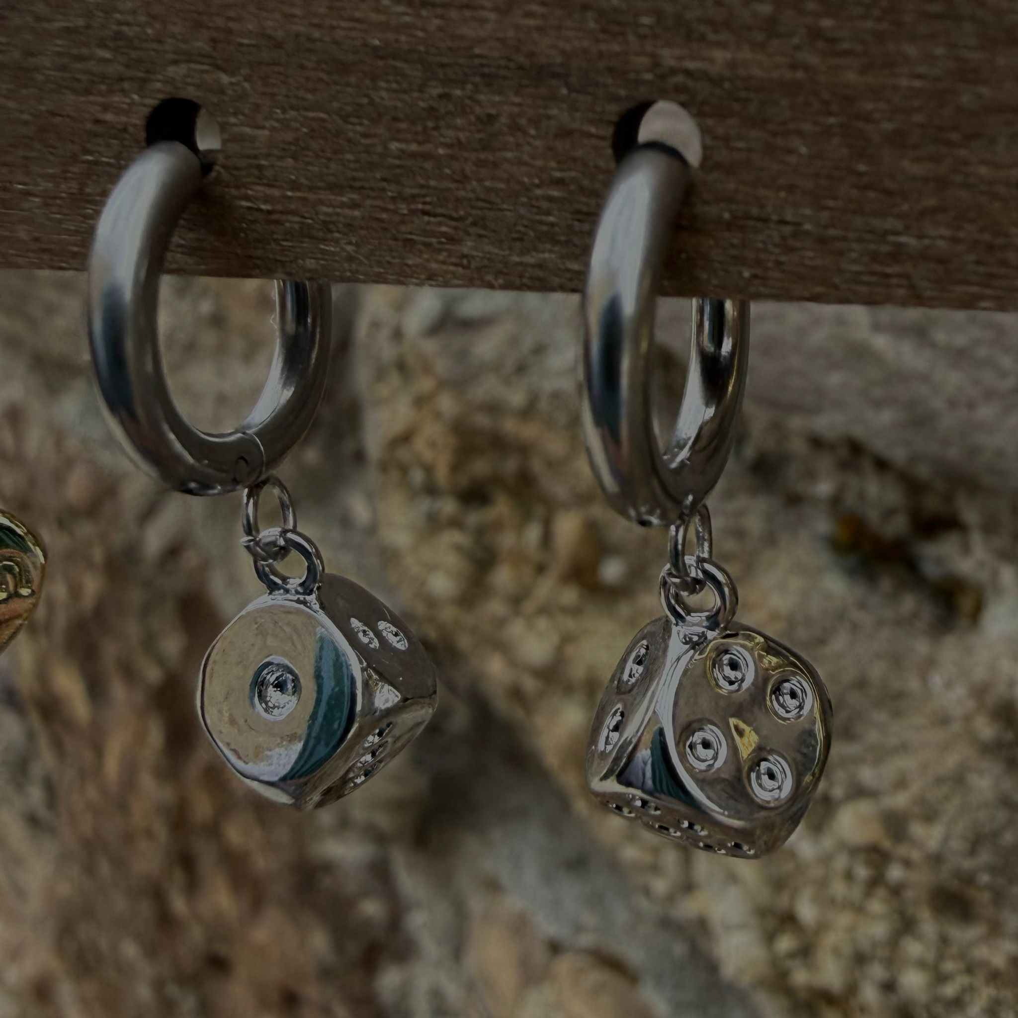 Pendientes aro plateado dados